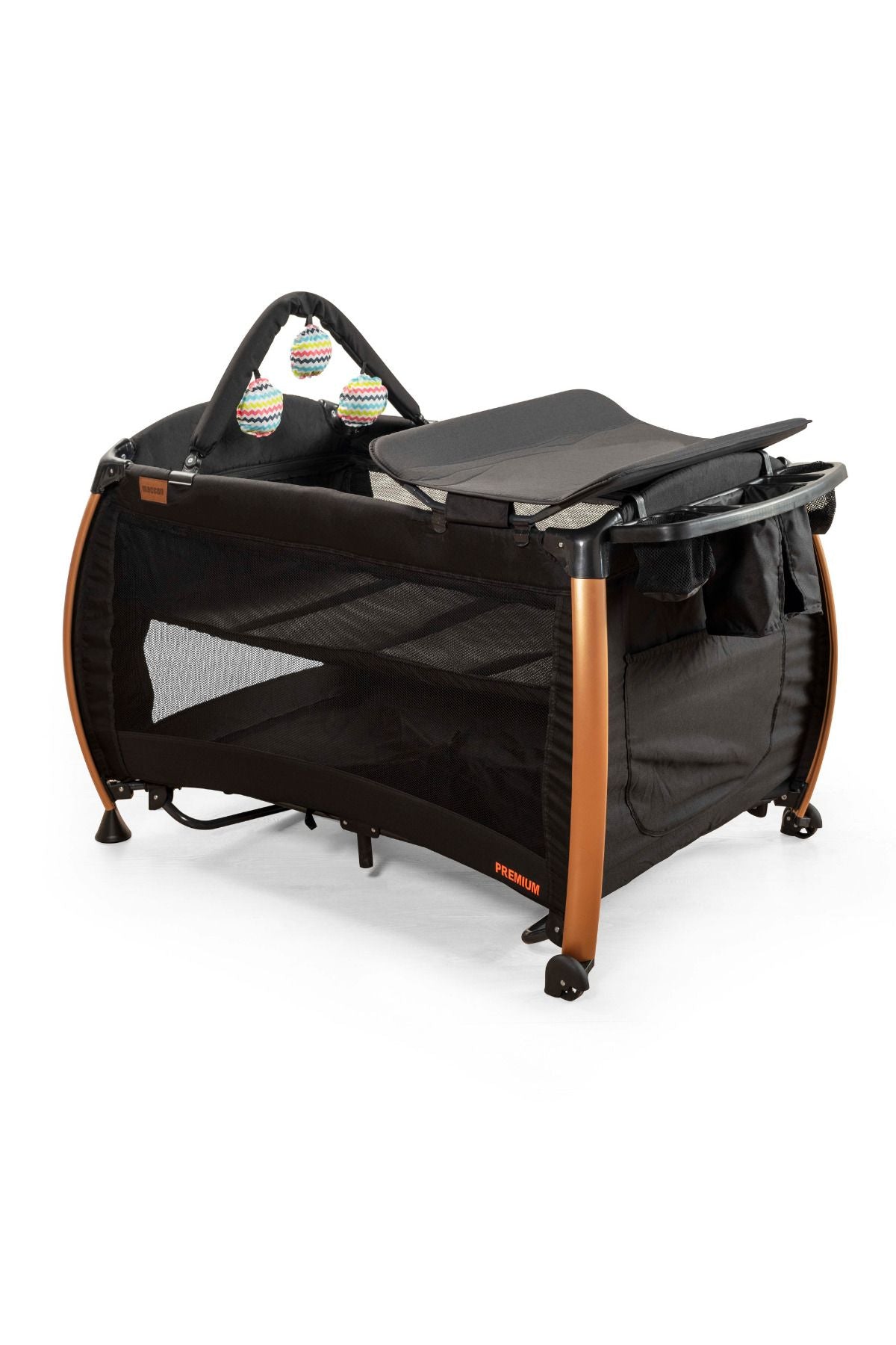 Hoffie Maccon Goldie, bebeğinizin güvenliğini ön planda tutarken aynı zamanda rahatlık ve kullanım kolaylığı sağlar. Sallanır mekanizması ve pratik taşıma çantası ile ebeveynlerin tercih ettiği ideal oyun parkı ve beşiktir.